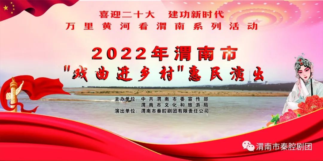 喜迎二十大,建功新時代,為進一步豐富群眾精神文化生活,以新面貌迎接黨的二十大召開,倡導文明新風尚,即日起,由中共渭南市委宣傳部、渭南市文化和旅游局主辦、渭南市秦腔劇團有限責任公司演出的“迎‘七一’2022 渭南市‘戲曲進鄉村’惠民演出活動”將走進鄉村為廣大鄉村群眾戲迷朋友送來豐富的文化大餐讓村民在家門口就可以了解、熱愛和傳承秦腔傳統文化,不斷豐富渭南人民的精神文化生活。請各位村民和戲迷朋友們提前關注預告,前來觀看。